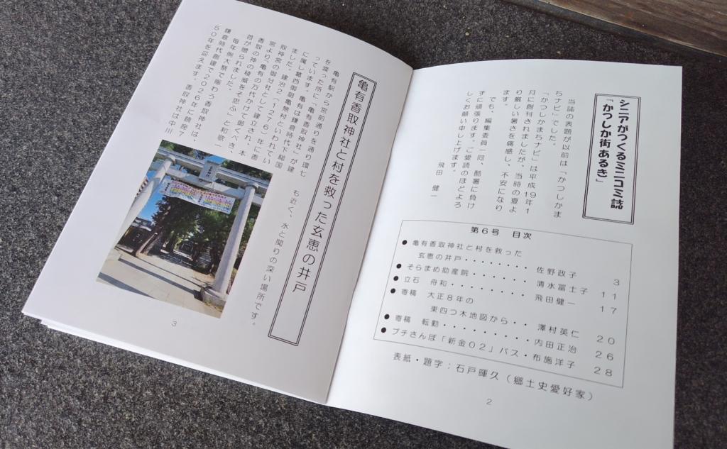 『かつしか街あるき』は葛飾区内のミニコミ誌として、主にシニアの方々の視点から、葛飾の様々な事柄を紹介しております。