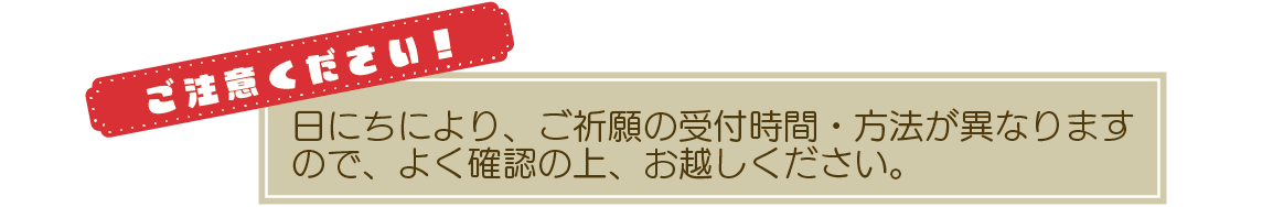新しい年に、皆様が心身ともに平穏健康で充実した日々をお過ごし頂ける様に、本年も新年特別祈願祭を執り行います。