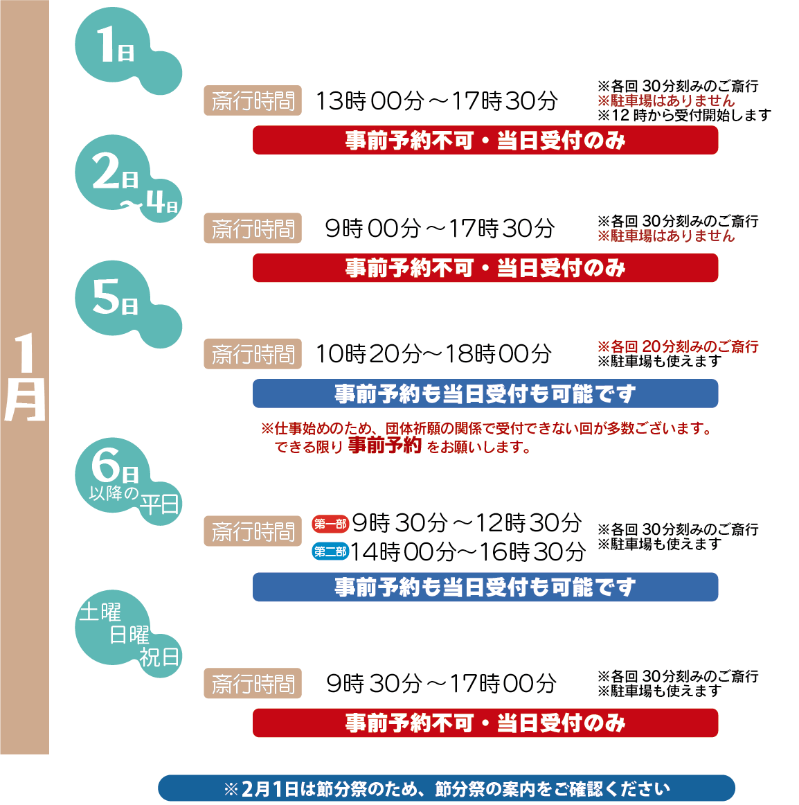開運厄除けなど新年のご祈願を希望される方は、参道の列に並ばずに直接社務所受付までお越しください。